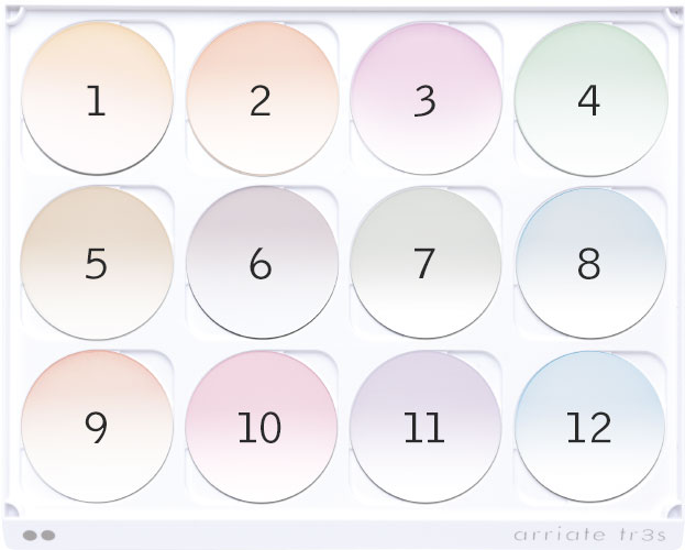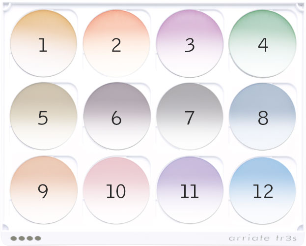 カラーレンズ見本と実際のレンズは、個々の染色仕上がりやコートの種類、 レンズの種類・度数等により多少異なることがあります。