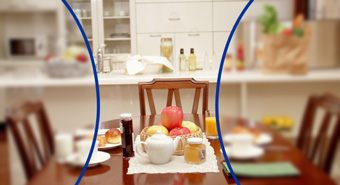 フィッティングポイントをレンズ中間部に設定した、キャスター独自の設計を採用。これにより、手元はもちろん少し離れたところの時計やカレンダー、ホワイトボードまではっきり見え、視線の移動もスムーズ。デスクワークや会議、食事やお稽古場にと、室内での活動に広く力を発揮します。